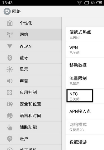 第一步:點擊設置——網(wǎng)絡,然后點擊NFC,就可以成功開啟,魅族MX3是默認開啟的,如果你不需要用到這個功能,再點擊一次就可以關閉了。