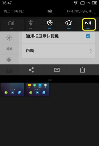 第四步:如果你經(jīng)常使用NFC,你也可以將NFC放到通知欄,以便設置開關和傳送。